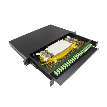 24 Port 1u 19inch LC/APC Fiber Patch Panel Fully Populated Single Mode Fiber Patch Panel Plate Sliding Tray ODF