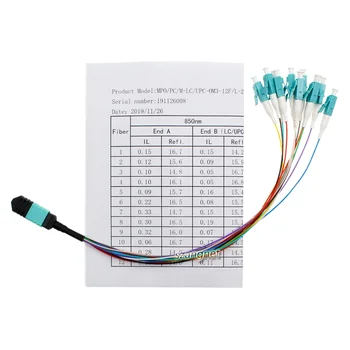 MPO LC OM3 12 Core Fiber Fanout Patch Pigtail Cable for Data Center